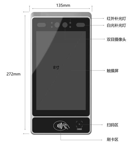 l 安卓7.1操作系統,RK3399處理器,4GB內存+16GB閃存 l 支持強光,可在戶(hù)外強光環(huán)境使用 l 二維碼識別:可選內置二維碼模塊,實(shí)現二維碼識別功能; l 支持人體紅外感應,感應到人體點(diǎn)亮補光燈,并點(diǎn)亮屏幕,人臉識別啟動(dòng),無(wú)人臉后屏幕和補光5S內自動(dòng)熄滅 l 補光燈在操作系統可開(kāi)閉,可手動(dòng)調節亮度 l 支持語(yǔ)音/視頻呼叫:訪(fǎng)問(wèn)者可以通過(guò)對講系統的呼叫訪(fǎng)問(wèn) l 支持雙目攝像頭:減少面部表情的影響和照片欺詐的風(fēng)險可用于白天和夜間 l 支持485信號/開(kāi)關(guān)量信號/韋根接口信號輸出 l 支持活體檢測 l 支持云端和本機端識別支持存儲大于20000張人臉 l 支持刷卡(NFC卡/IC卡),二維碼識別,二代證識別(可選),聲紋識別等多種方式,多種識別方式,選擇更多,安全系數更高。 l 支持4G模塊(可選) l 支持掛墻、支架和桌面安裝